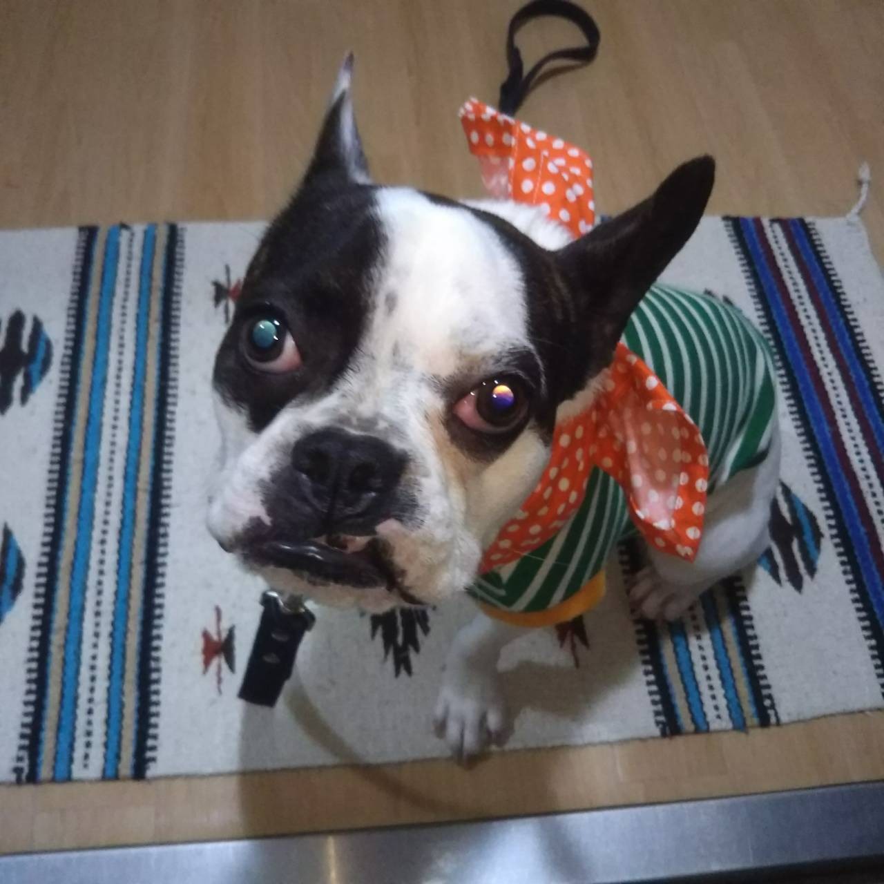 お散歩前のお利口さんポーズです。口引きつってるよん(^-^;) | PINE BULL