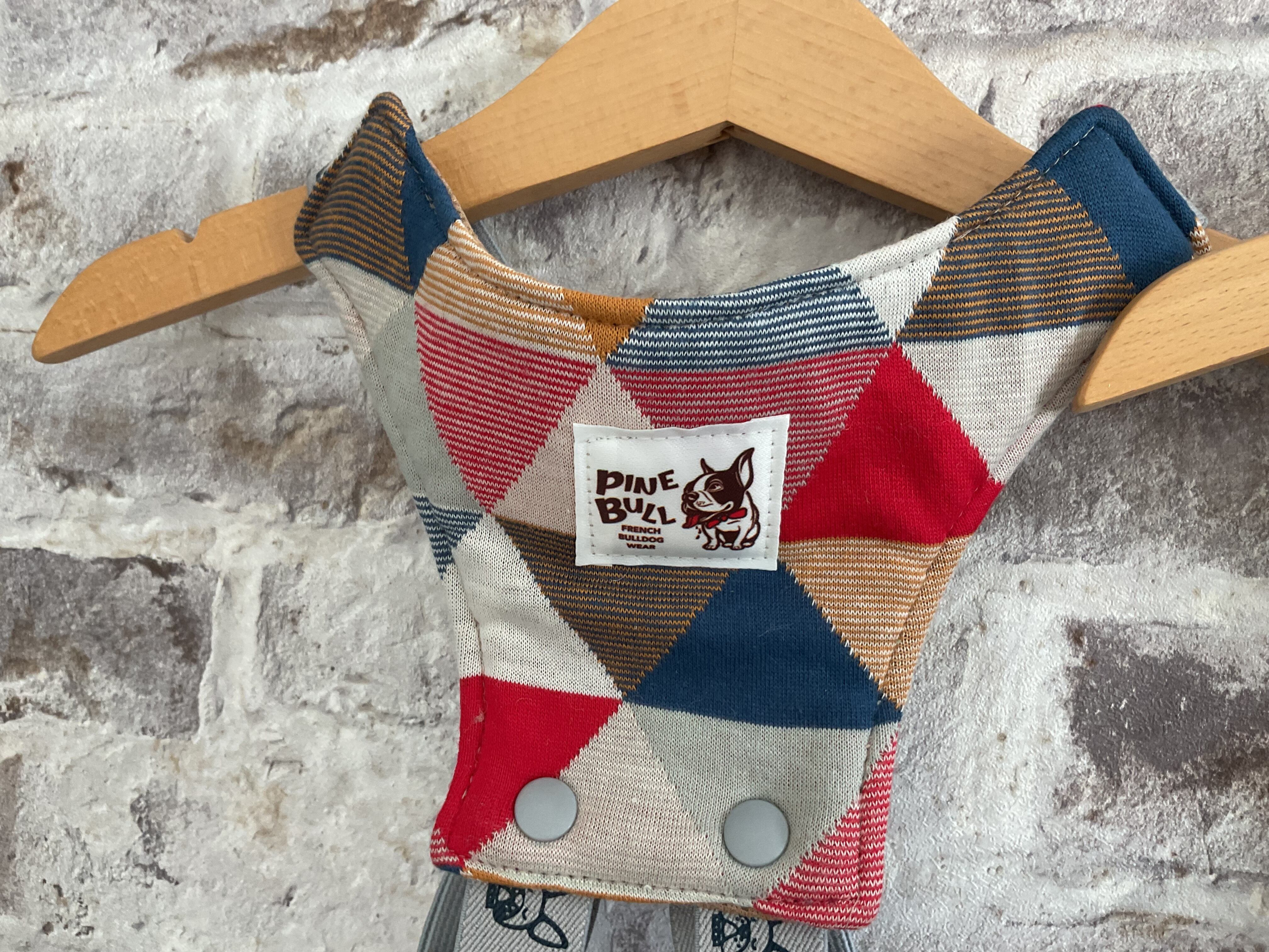 肩や首周りへの食い込みの負担を軽減出来るよう胸あてを付けたデザインです。