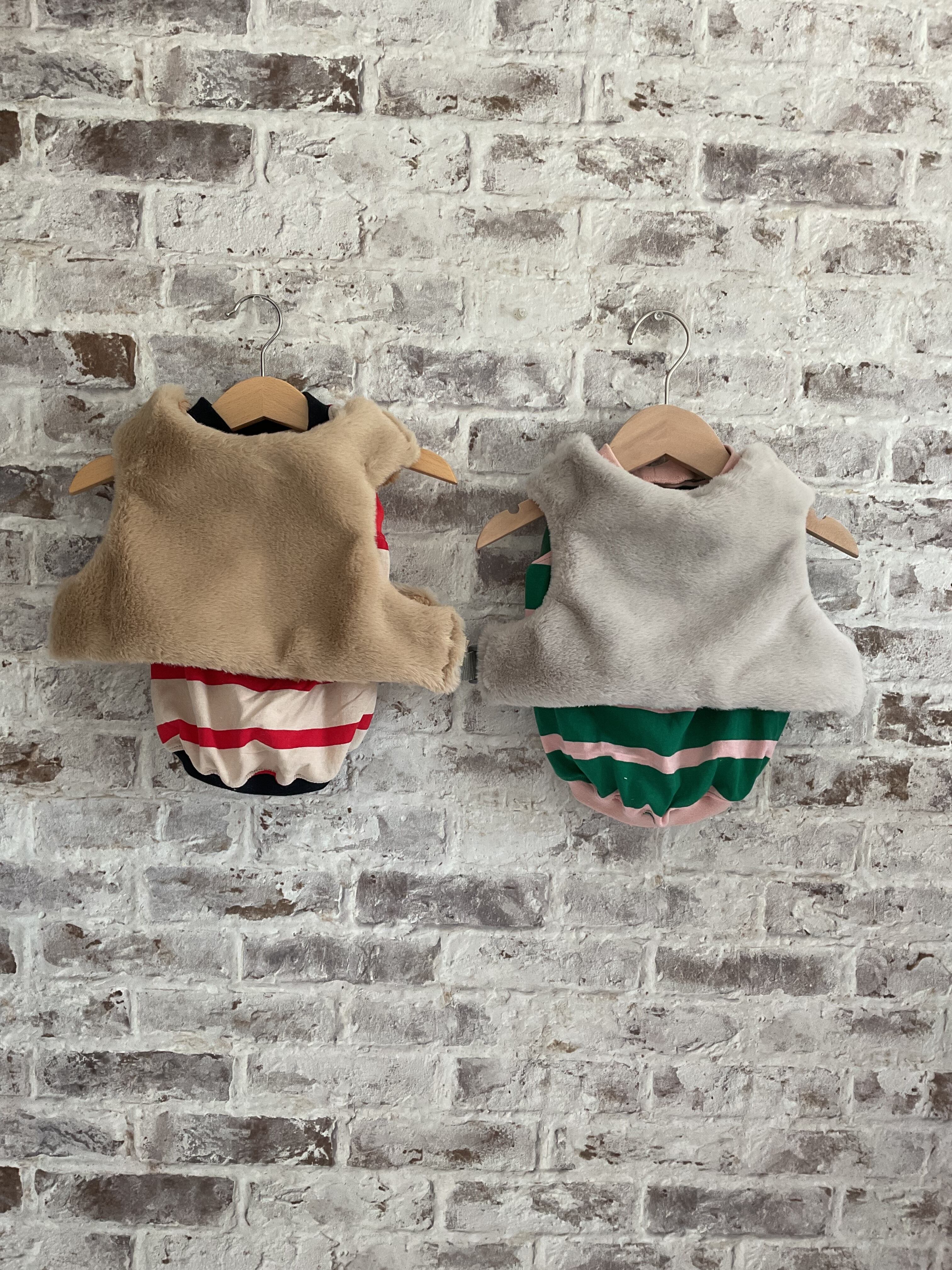 優しいカラーのベストととの組み合わせがおすすめです♪